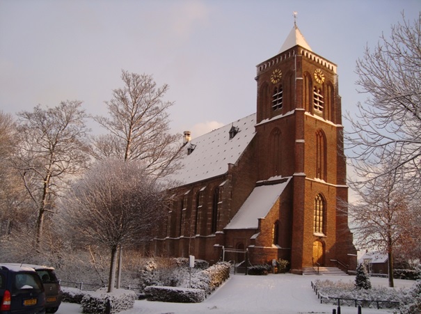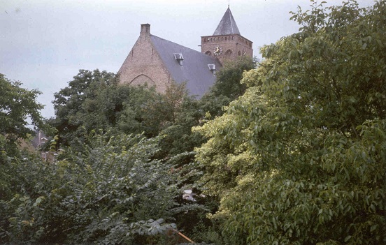 Kerkgbouw gezien vanuit de pastorie, jaar 1991